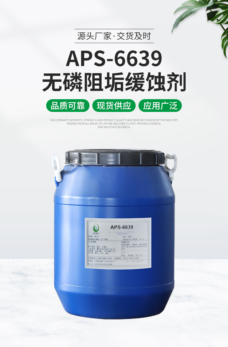 APS-6639由聚馬來酸酐、高效聚合物及助劑等組成,具有良好的緩蝕性能及分散性能和閾值阻垢效應(yīng);本品低磷(聚合物帶入部分),有更好的環(huán)境友好效益。